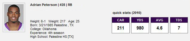 Adrian Peterson returned kicks vs Oregon 9/16, 3 returns for 68 yards. And vs Texas, 4 for 94 yards.